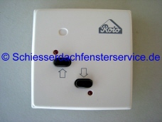 Trafo zwischen 230 V Netzspannung und 24 V Niederspannung. Bedienung über integrierte Taster Auf/Zu